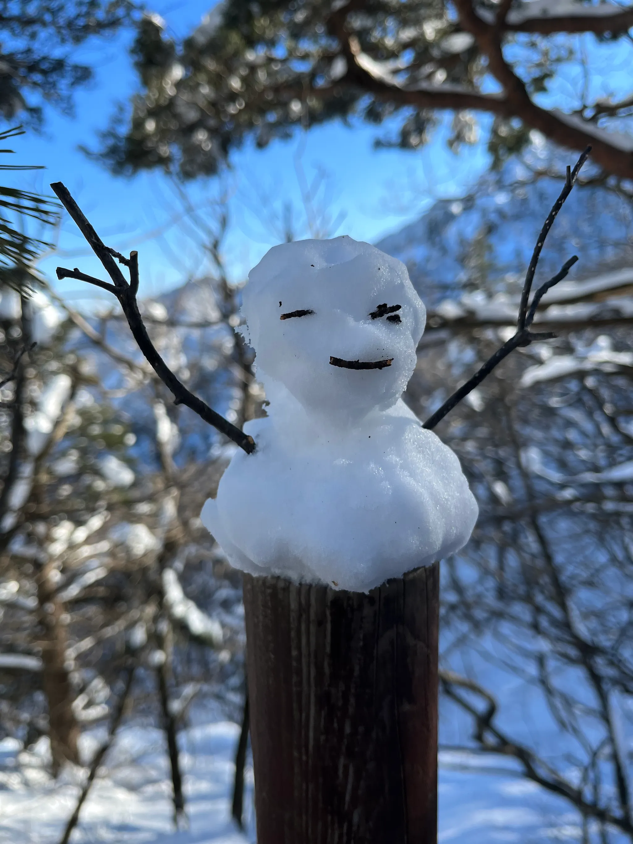 눈덮인 설악산과 조악한 눈사람