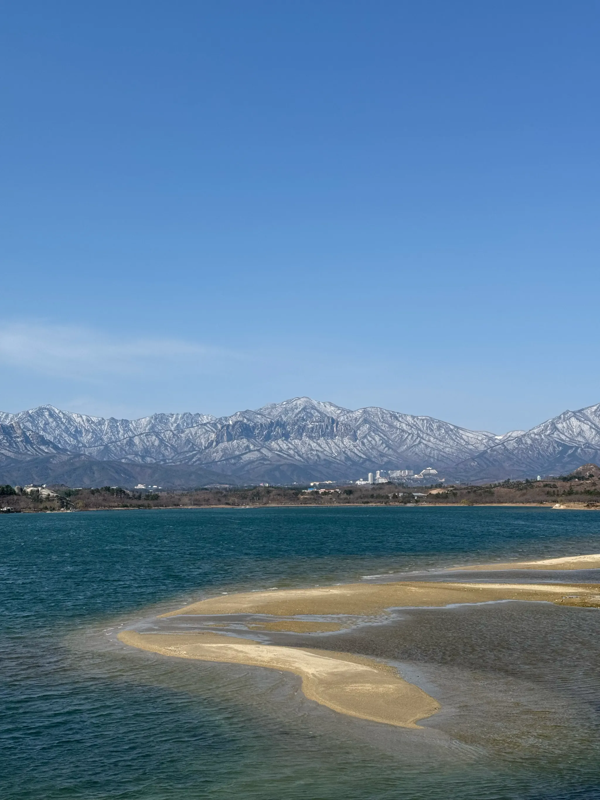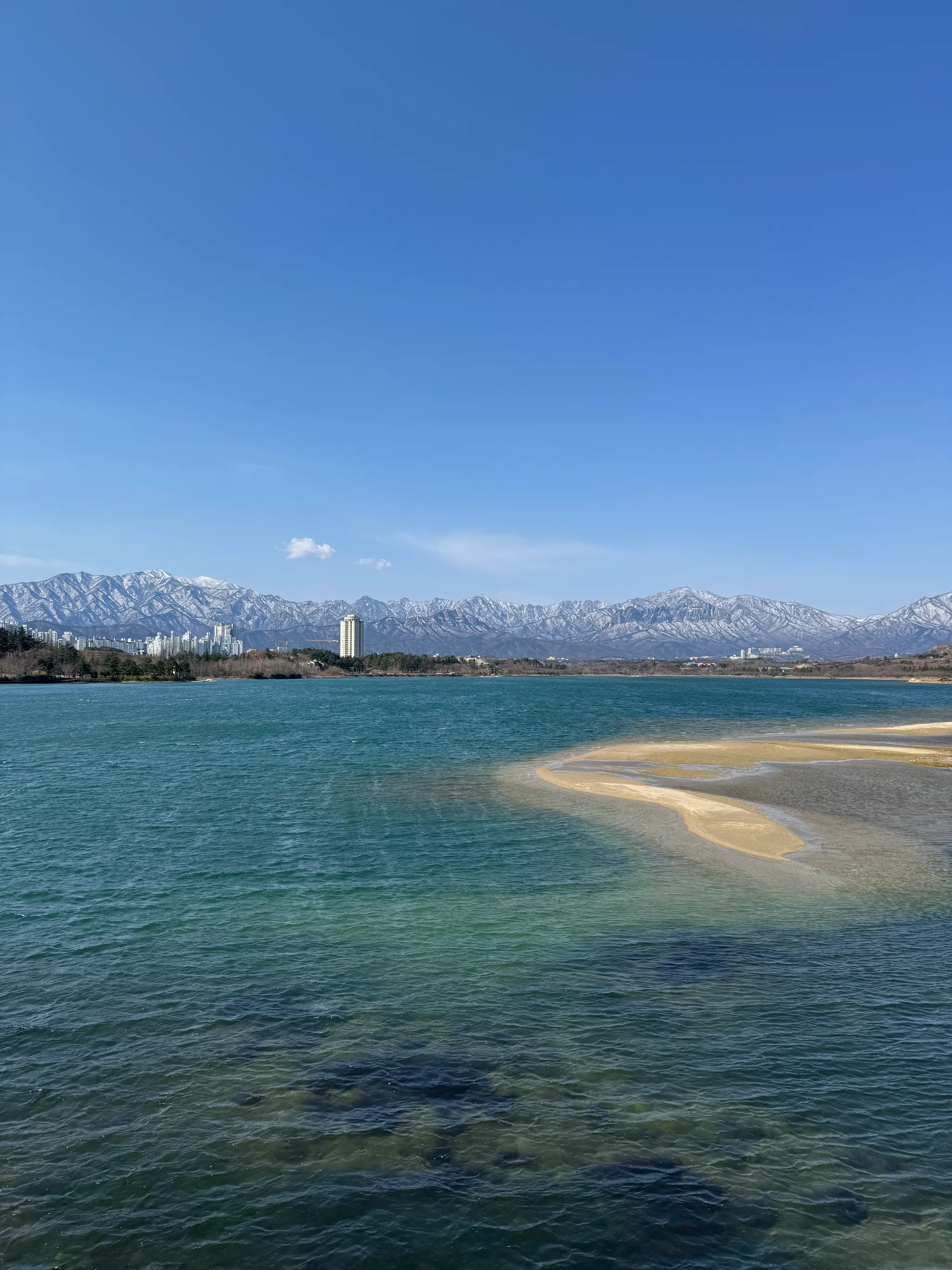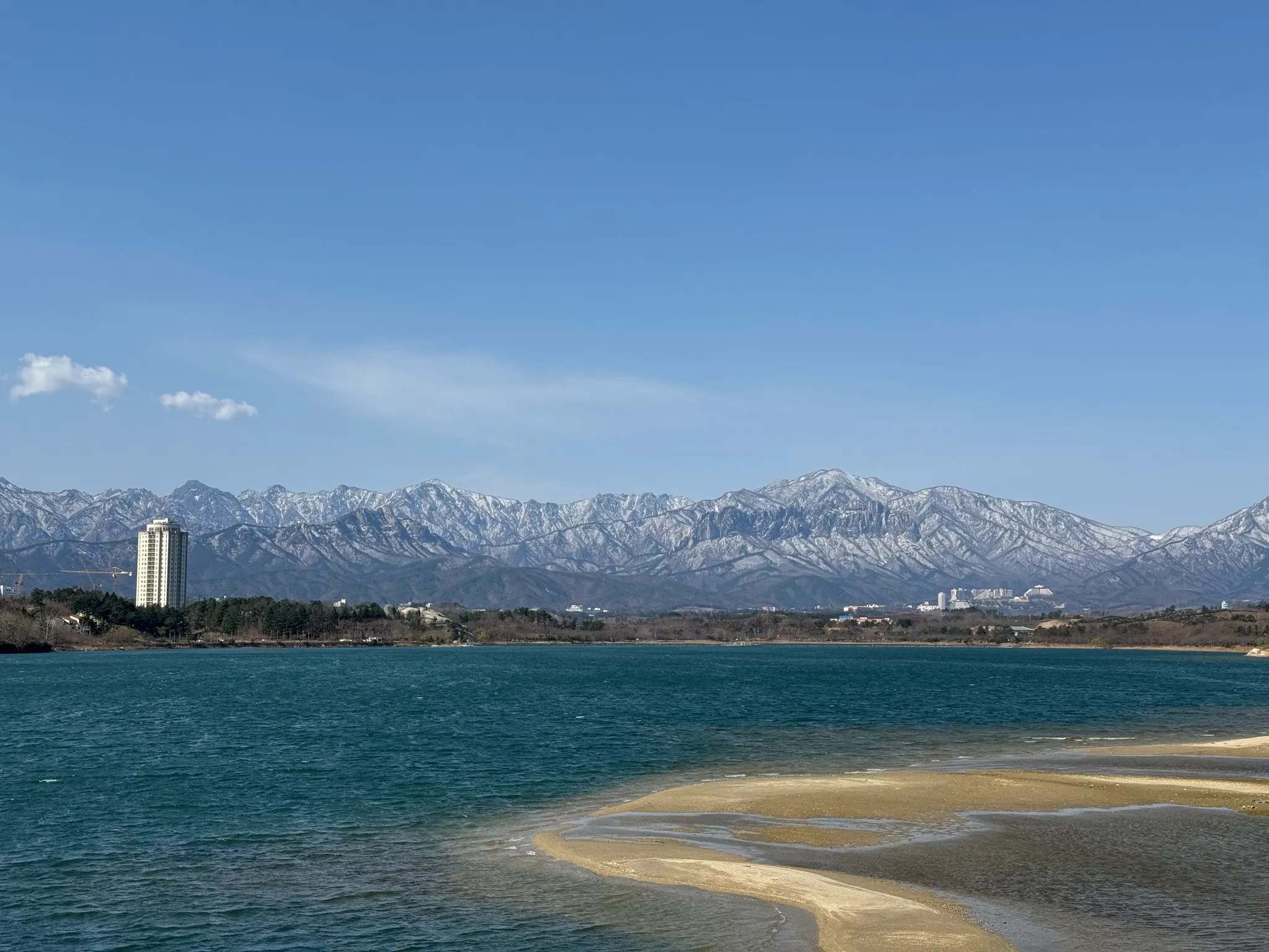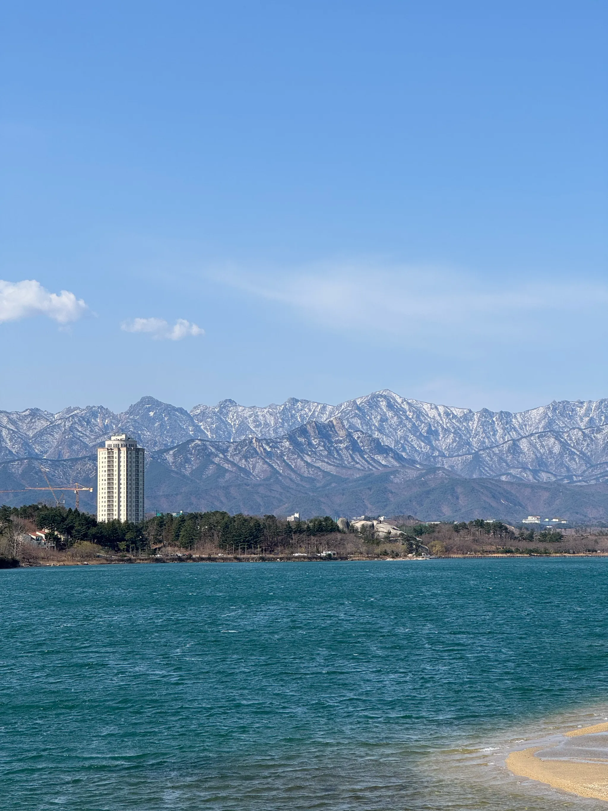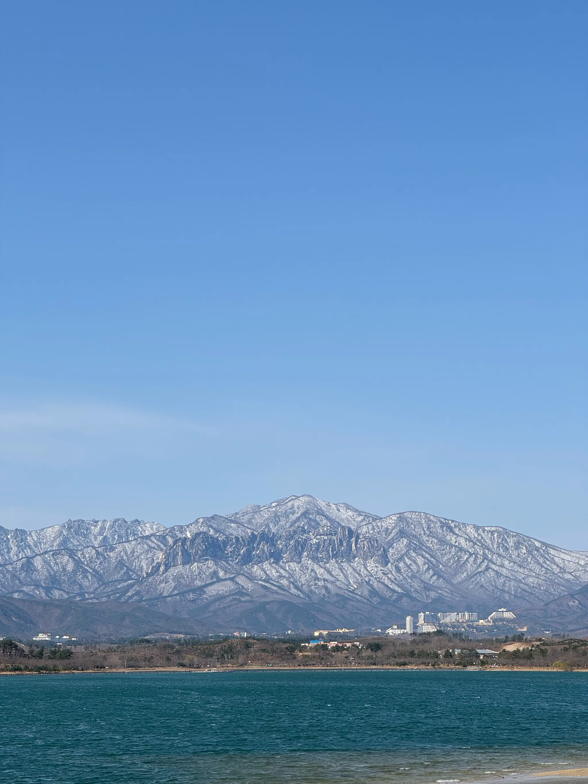 눈덮인 설악산 앞 푸른 영랑호