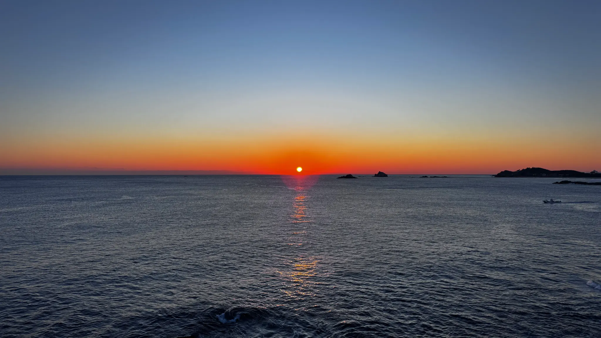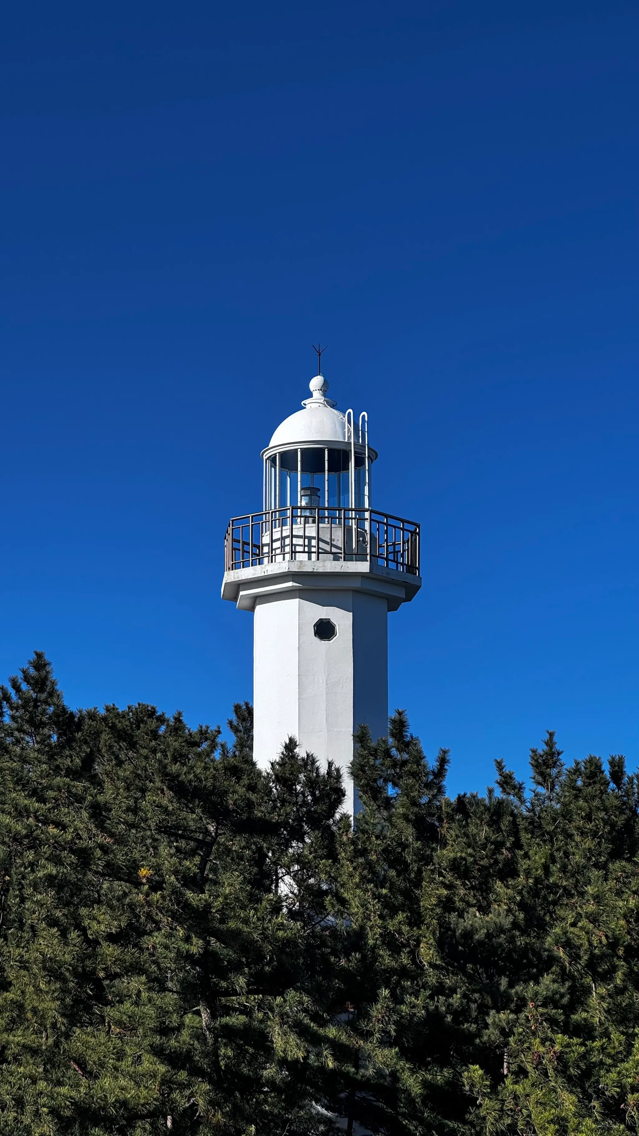 고성 오호리의 하얀 등대와 겨울바다